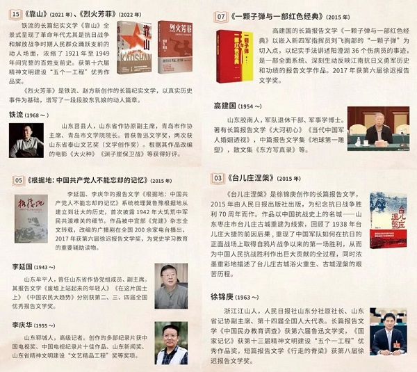 中國特色社會主義新時代以來,山東抗戰(zhàn)文學(xué)抒寫呈現(xiàn)多元視角與精神傳承。鐵流的長篇紀(jì)實文學(xué)《靠山》全景式呈現(xiàn)了革命年代人民群眾踴躍支前的動人場面,獲第十六屆精神文明建設(shè)“五個一工程”優(yōu)秀作品獎。李延國、李慶華的長篇紀(jì)實文學(xué)《根據(jù)地:中國共產(chǎn)黨人不能忘卻的記憶》被中宣部《黨建》雜志全文轉(zhuǎn)載,獲第六屆徐遲報告文學(xué)獎,成為黨史學(xué)習(xí)教育的重要輔導(dǎo)讀物。高建國的長篇紀(jì)實文學(xué)《一顆子彈與一部紅色經(jīng)典》獲第六屆徐遲報告文學(xué)獎。還有徐錦庚的報告文學(xué)《臺兒莊涅槃》、趙德發(fā)的長篇小說《大海風(fēng)》、楊文學(xué)的長篇紀(jì)實文學(xué)《百年沂蒙》等一系列優(yōu)秀作品,真實反映了山東地區(qū)軍民的戰(zhàn)斗生活,以文學(xué)的方式深入全民抗戰(zhàn)的歷史,續(xù)寫了抗戰(zhàn)題材文學(xué)創(chuàng)作的嶄新篇章。