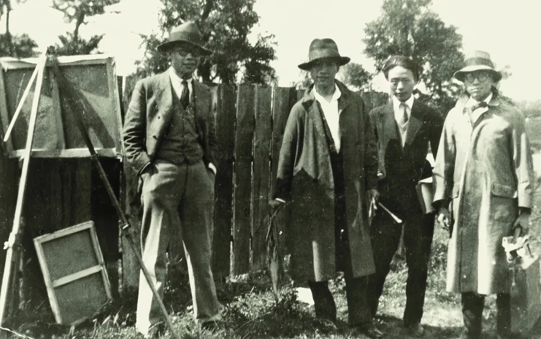 1930年,艾青在巴黎與其他中國留學(xué)生合影 左起:唐一禾、吳作人、艾青、周方白