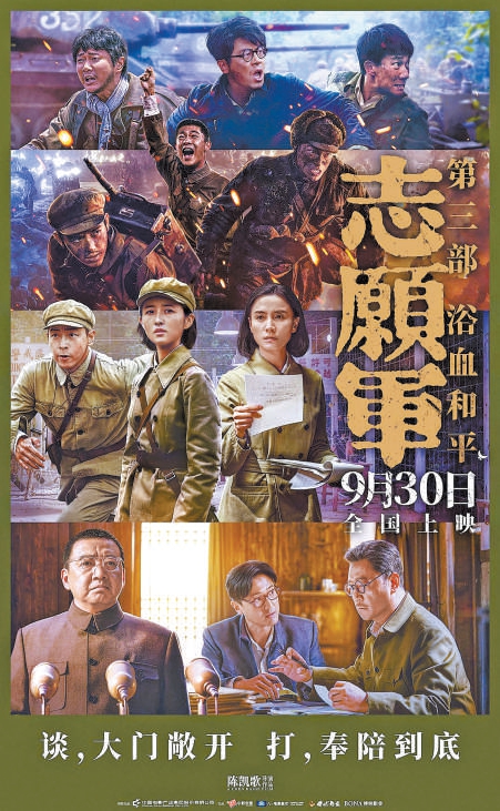 相較于前兩部,《志愿軍:浴血和平》在戰爭場面上進一步升級,以工業化水準多元全景式打造前線戰場。除了重現上甘嶺戰役,影片還將呈現金城戰役的坦克激戰、鐵道運輸的反“絞殺戰”等,刻畫戰地焦土之上,志愿軍戰士為和平浴血奮戰的英勇身姿,描繪一幅全面、立體的戰爭圖卷。影片演員陣容依舊豪華,包括張子楓、宋佳、朱亞文、陳飛宇、彭昱暢、肖央、王硯輝等。影片9月30日上映。