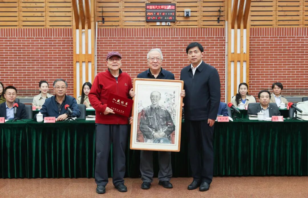 座談會上,鄭蘇伊代表臧克家親屬向中國現代文學館捐贈了1000余件手稿、實物,368本名家簽名贈書等珍貴文獻。畫家紀清遠、李培禹捐贈了畫作《詩人臧克家》。中國現代文學館常務副館長王軍接受捐贈,并頒發入藏證書。
