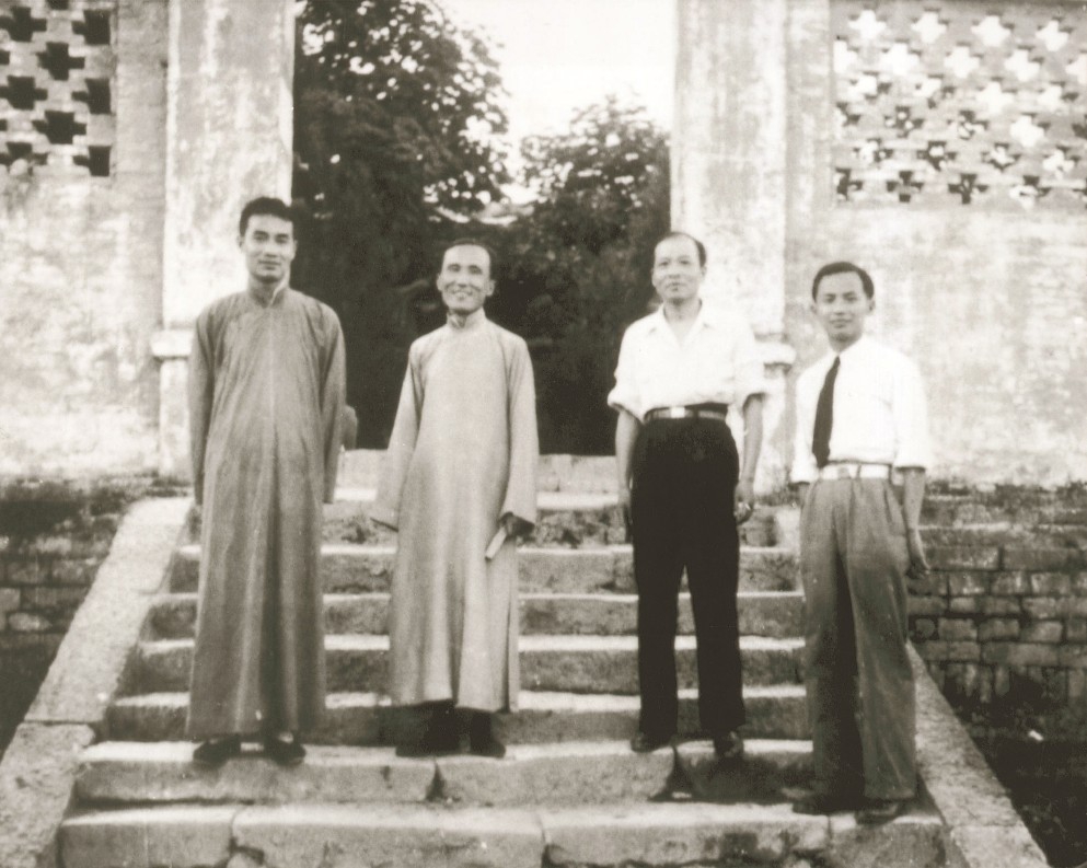 1939年蘇步青(右二)與陳仲和(左一)、陳建功(左二)、熊全治(右一)在廣西宜山文廟前合影