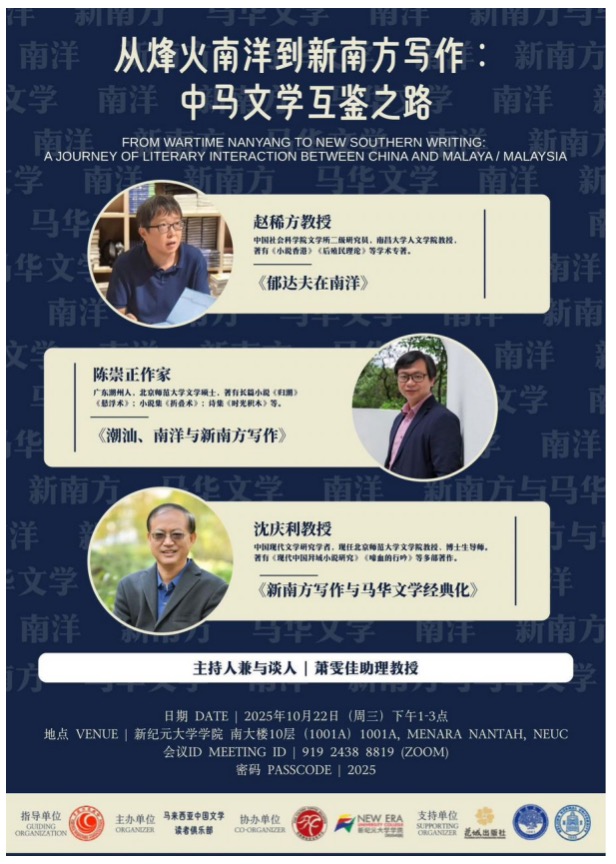 近日,由中國作家協(xié)會(huì)外聯(lián)部指導(dǎo),馬來西亞中國文學(xué)讀者俱樂部主辦,馬來西亞漢文化中心、南方大學(xué)學(xué)院與新紀(jì)元大學(xué)學(xué)院共同承辦的“新南方、新南洋”文學(xué)思潮海外推廣系列活動(dòng)在馬來西亞舉辦,中國作家陳崇正、學(xué)者趙稀方和沈慶利赴馬與馬來西亞文學(xué)界人士充分交流,開展了一系列充滿思想深度的對(duì)話。