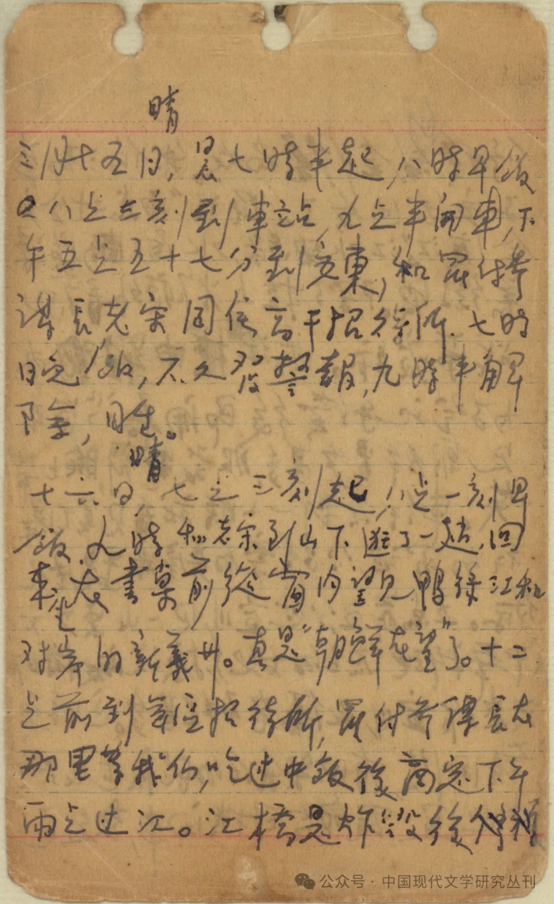 巴金《赴朝日記》1952年7月2日日記手稿及抄稿